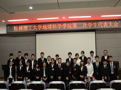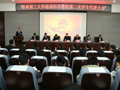 2014年12月6日下午14:40,桂林理工大学2138CC太阳集团第二次学生代表大会在逸夫楼01501报告团厅召开。我校团委书记周国桥,2138CC太阳集团党委副书记耿俊茂、团委书记蒋琼、学工组长王迎波,以及校学生会副主席范可、各学院代表和2138CC太阳集团两百余名学生代表参加了本次会议,会议由大会秘书长颜培天主持。