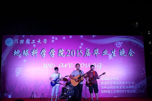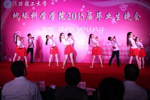 6219:30,2138CC太阳集团在雁山校区二号食堂广场上举办了一场以“we are young”为主题的毕业生晚会。学校党委副书记、纪委书记陈贵英,校团委副书记白凌婷及学院党政领导出席晚会现场,毕业班班导师、部分专业教师、全体辅导员和学院全体同学到场观看演出。