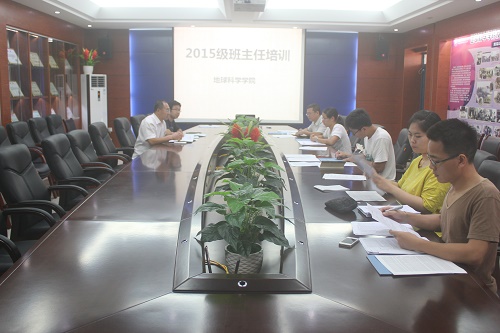 9月11日上午,在雁山校区01215会议室,学院举行2015级新生班主任培训会,党委副书记耿俊茂参加会议、学工组长王迎波主持会议。