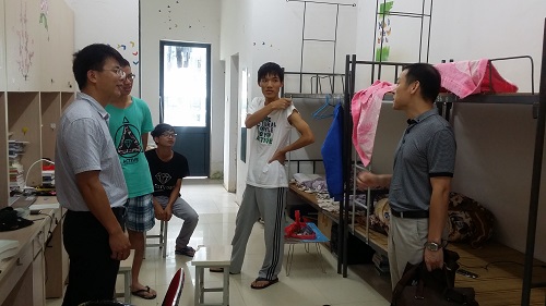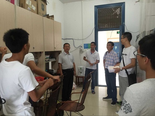 8月30日是2015年秋季学期学生报到注册的时间,学院院长熊彬,党委书记姜子亮、党委副书记耿俊茂、学院副院长康志强带领学工办全体辅导员走进学生宿舍,关注开学期间学生思想动态。