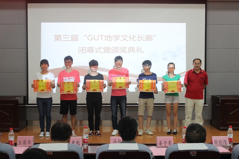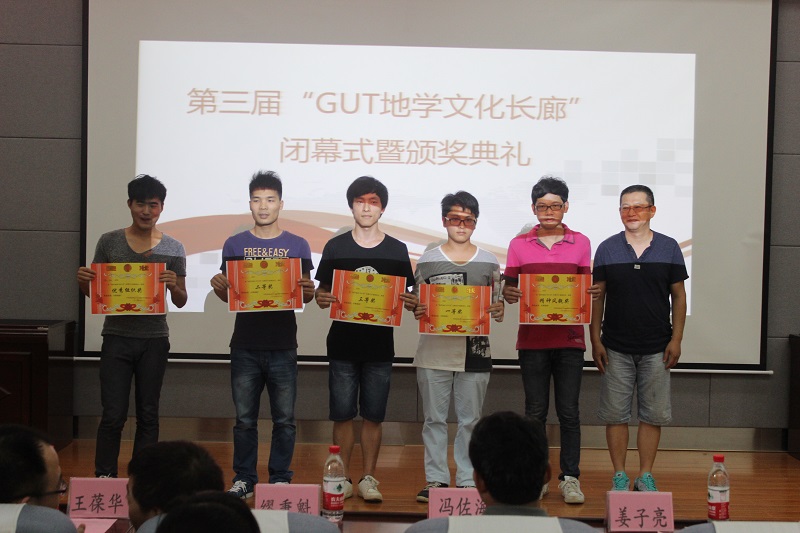 6月16日14:30,2138CC太阳集团第三届“GUT地学文化长廊”闭幕式暨颁奖典礼在逸夫楼01501报告厅隆重举行,2138CC太阳集团党委书记姜子亮,院长冯佐海,副院长繆秉魁、王葆华,党委副书记耿俊茂,团委书记蒋琼,学工处组长王迎波出席了本次颁奖典礼。