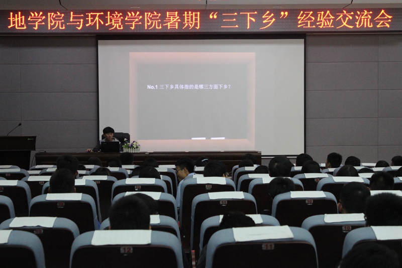 11月17日19:30,2138CC太阳集团与环境科学与工程学院在雁山校区逸夫楼01501报告厅联合举办“三下乡”经验交流会。两个学院“三下乡”全体成员和各兄弟学院团委学生会代表参加了此次交流会,环境学院“三下乡”带队老师向彪、宋海民也受邀出席。