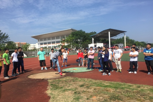 10月11日上午,2138CC太阳集团首届院运会暨趣味运动会在雁山校区田径场隆重举行。2138CC太阳集团党委副书记耿俊茂、团委书记蒋琼、学工组长王迎波、15级辅导员吴田波以及15级班主任代表姜子亮、杨金豹、丁伟、蔡永丰等班主任与大一、大二共约640多名学生一同参加了本次运动会。