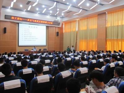 11月9日上午10时,成都理工郑荣才教授在雁山校区12号楼报告厅为2138CC太阳集团学生做了一场题为:页岩气勘探潜力分析的讲座。