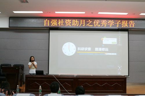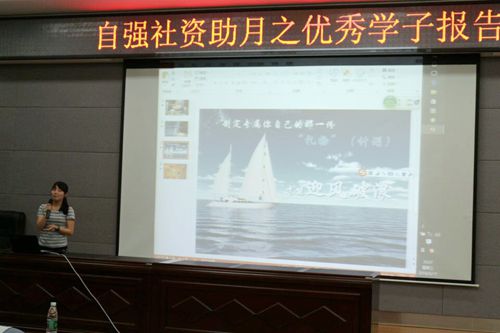 报告会上,莫老师为活动开场致辞,并介绍了到场的优秀学子们。接着,薛永丽同学就如何正确认识自己,培养自立自强、勤奋好学的优秀品格讲了个人的见解。孙娟娟同学结合自己参加大学生科技创新活动的经历和同学们分享项目申报的经验,她鼓励同学们积极参与大学生科技创新研究活动,促进自身学术研究水平和专业实践技能的提升。最后,宁玲同学跟大家分享考研方面的经验,并说“现在逼着自己做不想做的事情,是为了将来尽情去做自己想做的”,激励大家努力学习,希望大家将来有更多的收获。