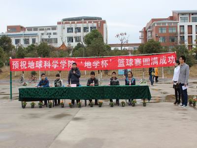 为了丰富大学生的课余生活,提高大学生的综合素质,增强团队精神和集体凝聚力,展现大学生积极向上的风貌, 3月8日中午13时30分,“地学杯”篮球赛在雁山校区篮球场开幕,学院学工组长王迎波老师以及学院团委学生会主席团全体成员参加了开幕式。