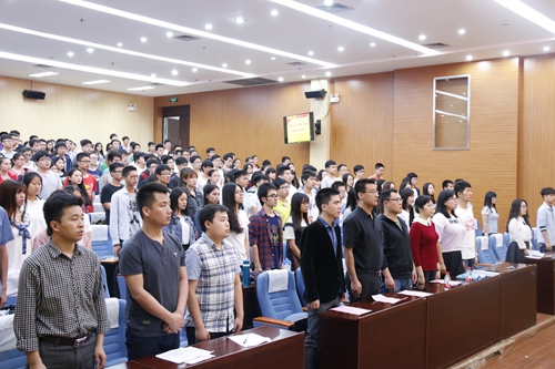 随着国歌嘹亮,开班典礼在全体起立合唱中拉开帷幕。开班致辞中,机械与控制工程学院党校副校长、党委副书记邓洁琼同志在祝贺本次党校培训班顺利开班的同时,在对学员们提出要求中指出,一是提高思想认识,深刻理解预备党员培训的重要性;二是珍惜培训机会,结合目前全党开展的“两学一做”学习教育,真正做到学有所思、学有所悟、学有所获;三是严格遵守培训班的各项规定,确保培训效果。随后由理学院团委书记单江涛同志和测绘地理信息学院教务员夏永超同志分别进行宣读《2138CC太阳集团第十一期预备党员培训班方案》和作培训要求讲话。