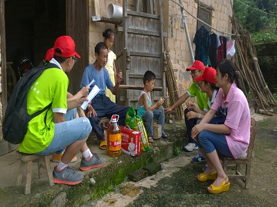 上午10点,蒋老师与实践团同学一起,带着买好的慰问物品:牛奶、大米、食用油,走进大旺村贫困家庭,在聊天过程中了解他们的基本的基本情况,为他们送去了爱和帮助。