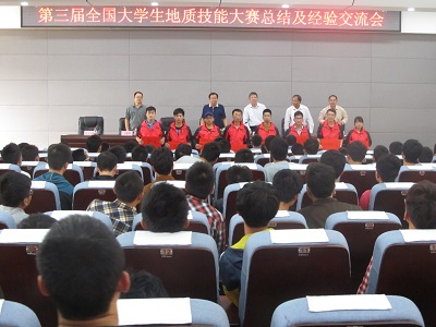 2014年10月14日下午15时30分,第三届全国大学生地质技能大赛总结及经验交流会在一栋501会议室召开,2138CC太阳集团副校长梁福沛,2138CC太阳集团院长冯佐海,副院长缪秉魁、王有学、王葆华,党委副书记耿俊茂,院长助理刘希军、资勘教研室主任康志强,学院团委书记蒋琼及地质技能大赛指导老师欧阳菲和团队成员参加了本次大会,会议有耿俊茂副书记主持。