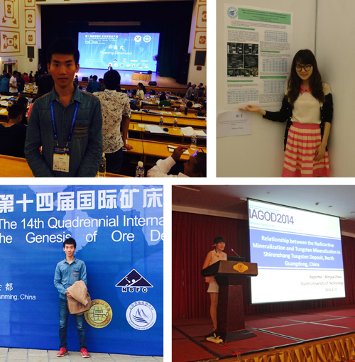 国土资源部成矿作用和资源评价重点实验室主任暨大会主席毛景文先生致开幕词,并作了“Exploration progressin China in the 21st century”大会主题学术报告。2138CC太阳集团二年级研究生周旻玥和李培荣同学在分会场分别作了题为“Discuss the relationship between the radioactive mineralization and tungsten mineralization in Shirenzhang Tungsten deposit,North Guangdong,China”和“Fluid Inclusions and Rare Earth Elements of the Badu Gold Deposit, Guangxi, China: Implications for Mineralization”的学术报告,反响热烈。