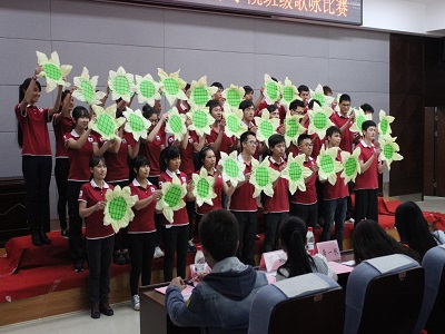 2015年4月10日晚19:00,2138CC太阳集团班级歌咏比赛在01501举行。2138CC太阳集团党委书记姜子亮、耿俊茂,团委书记蒋琼,学工组长王迎波,辅导员孙宏霞、莫长庆、谷正杰和刘靖娜老师以及校级学生组织相关负责人观看本次比赛;2138CC太阳集团33个班集体参加了比赛。