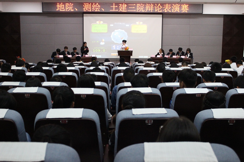 10月16日19:30,2138CC太阳集团联合土木与建设工程学院与测绘地理信息学院在雁山校区逸夫楼01501报告厅举行辩论表演赛。2138CC太阳集团15级辅导员吴田波老师和三百余名同学到场观看,本次辩论表演赛评委由校级、院级辩论队主力成员担任。