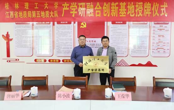 座谈会后,双方举行了2138CC太阳集团和江西省第五地质大队共建产学研融合创新基地授牌仪式。双方将依据“优势互补、共同发展、互利共赢”原则,在科研平台建设、人才培养与交流、业务融合、科技成果集成与转化等领域开展全方位合作,构建产学研深度融合创新体系,以创新驱动高质量发展,努力开创产学研用一体化新格局,推动更多的合作成果落地。