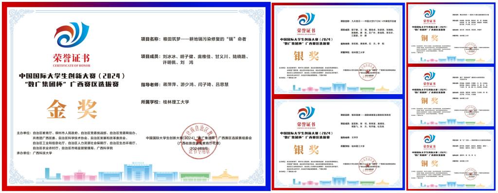 荣获中国国际大学生创新大赛(2024)“数广集团杯”广西赛区选拔赛金奖1项、银奖2项、铜奖3项