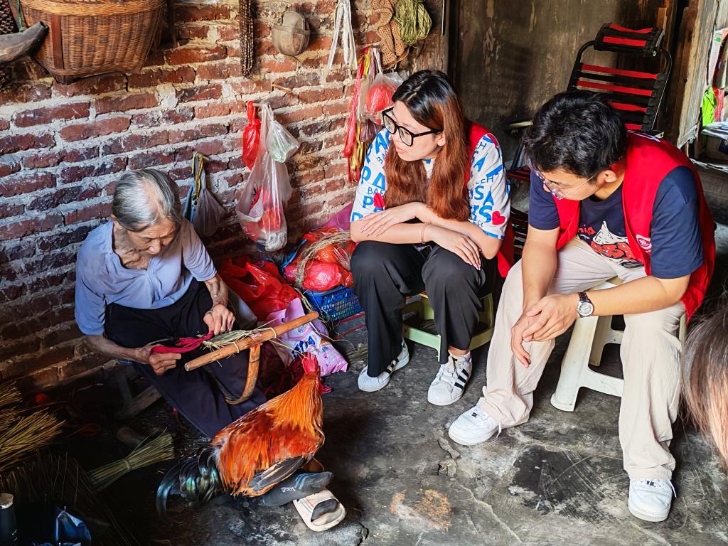 实践团成员在熊村向当地居民进行编草鞋等民俗文化的调研