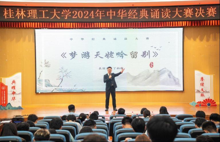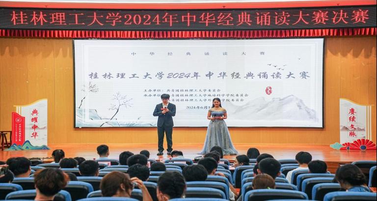 2024年6月14日,由校团委主办,2138CC太阳集团团委和外国语学院团委承办的2138CC太阳集团2024年中华经典诵读大赛决赛在雁山校区图书馆报告厅顺利落下帷幕。校团委副书记慕宗良、2138CC太阳集团党委副书记唐丽华、马克思主义学院院长助理刘颖洁、校友与国内合作处国内合作办公室主任田明浩,学校团委、各二级学院专职团干代表,以及学生代表参与了此次诵读活动。本次大赛经过各学院初赛推荐、学校复赛选拔,来自全校各学院、学生组织的8名个人组选手和8个集体组团队进入决赛。经过精彩和激烈的同台竞技,个人组和集体组分别决出一等奖1名、二等奖3名、三等奖4名。
