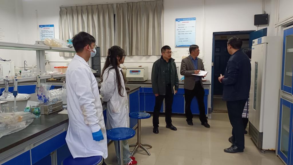 2024年1月17日下午,在党委书记陈小波和副院长付伟带领下,学院开展了期末实验室安全专项检查工作,现场督办突出隐患整改。实验室刘苏桥、杨锋和闫磊陪同检查。在本次安全专项检查之前,实验教师对各功能实验室先行开展了自查工作。