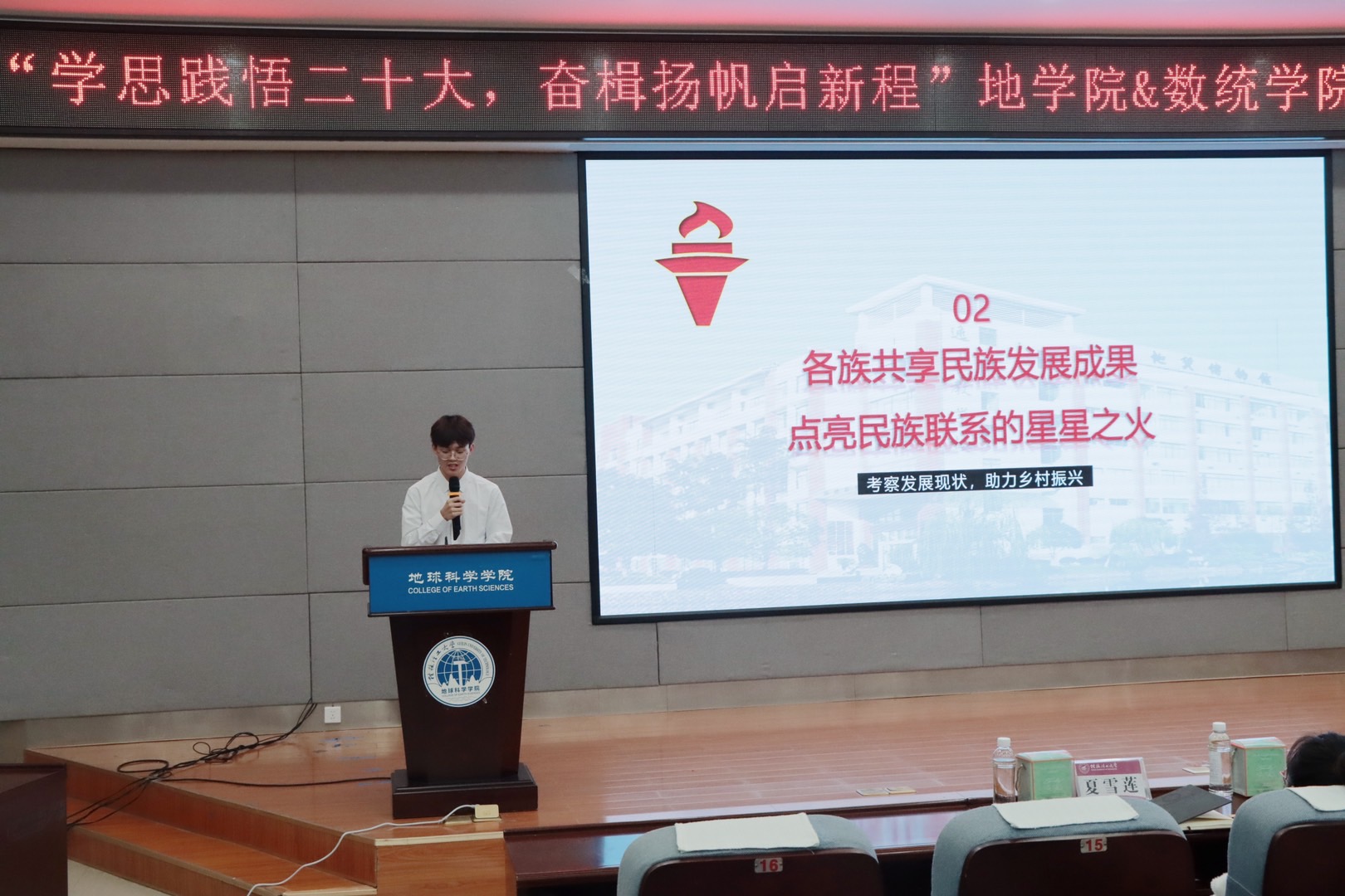 活动过程中,由七支“三下乡”宣讲团队依次上台分享交流经验,他们分别从乡村振兴、乡村支教、民族团结、少儿科普、防治结核等方面进行宣讲,为同学们详细介绍了新时代的新农村和新面貌,增加了同学们对“三下乡”活动的了解。活动过程中还设有问答环节,为同学们现场答疑解惑,现场热闹非凡,通过提问同学们不仅加深了对活动的了解,还获得了精美的小礼品。“三下乡”的主旨是在人与人间传递温暖,在社会上传播正能量,希望同学们积极响应党的二十大号召,在实践中不断提升自身综合素质,凝练爱国情怀,为中华民族伟大复兴而不断奋斗。