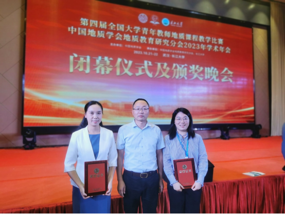 10月21日,第四届全国大学青年教师地质课程教学比赛暨中国地质学会地质教育研究分会2023年学术年会在长江大学武汉校区知音湖畔举行。我院冯梦、刘靖娜两位老师代表学校参加了比赛,其中冯梦老师获得特等奖,刘靖娜老师获得一等奖,学校获得优秀组织奖。