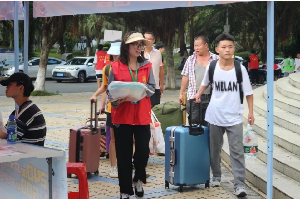 其次,学生志愿者热情服务。学院前期招募了迎新志愿者队伍,并召开了志愿者培训会。在迎新当天,迎新志愿者统一标识、亮明身份,一声声“同学好”“跟我来”,一张张微笑的面容,一次次贴心暖心用心的服务与帮助为新生及新生家长带来无微不至关爱。