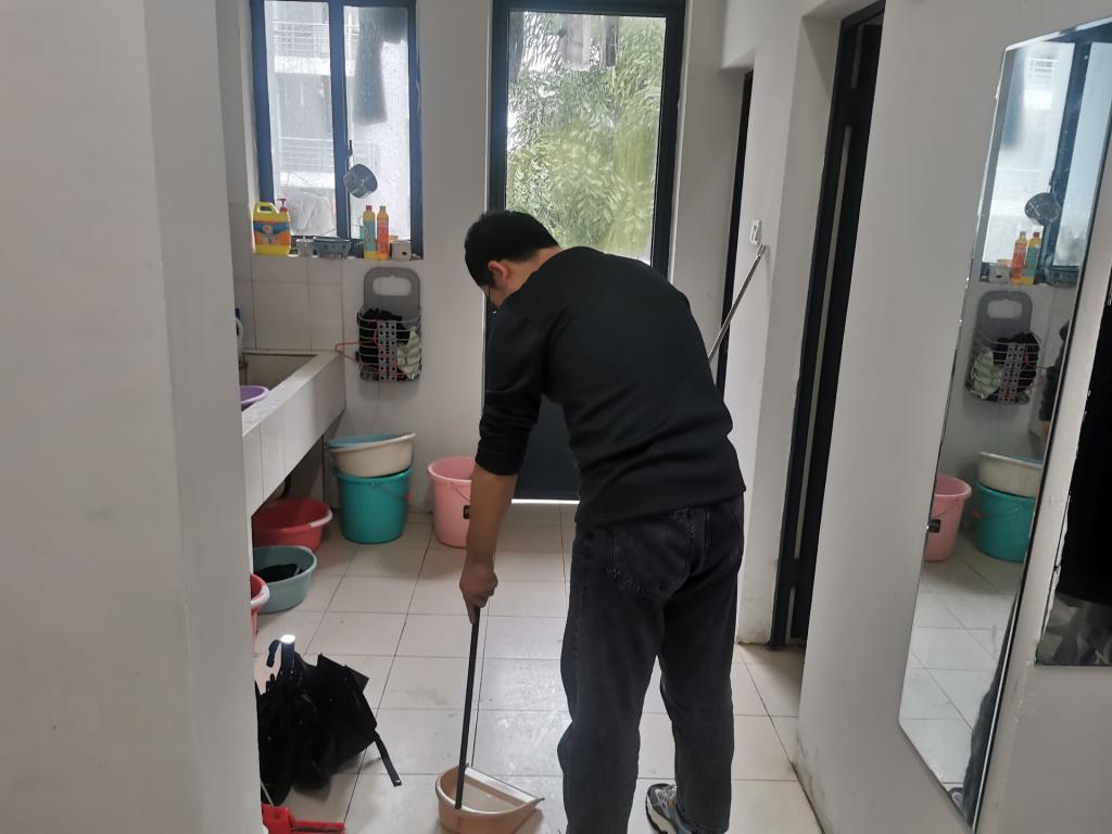 活动过程中,在宿舍长分配完任务后,宿舍成员立即行动了起来。在整理好个人的床铺和物品后,同学们全都拿起劳动工具,一丝不苟地为他们共同的小家“洗刷刷”,没有一人观望,没有一人喊累。他们有的打扫地面,有的摆放物品,有的擦灰儿,有的清理卫生间,既分工负责又密切配合,按照干净、彻底、不留死角的要求,他们不放过每个角落,门框、门窗玻璃、桌底和卫生间等平日无暇顾及的卫生死角在本次清扫中无一遗漏。劳动中,他们干劲十足,精益求精;劳动后,他们互相检查,反复整改。人多力量大,辛勤的劳动让原本杂乱的寝室焕然一新,在宿舍变整洁的同时展现了良好的精神风貌,营造了舒适安全卫生的学习生活环境。