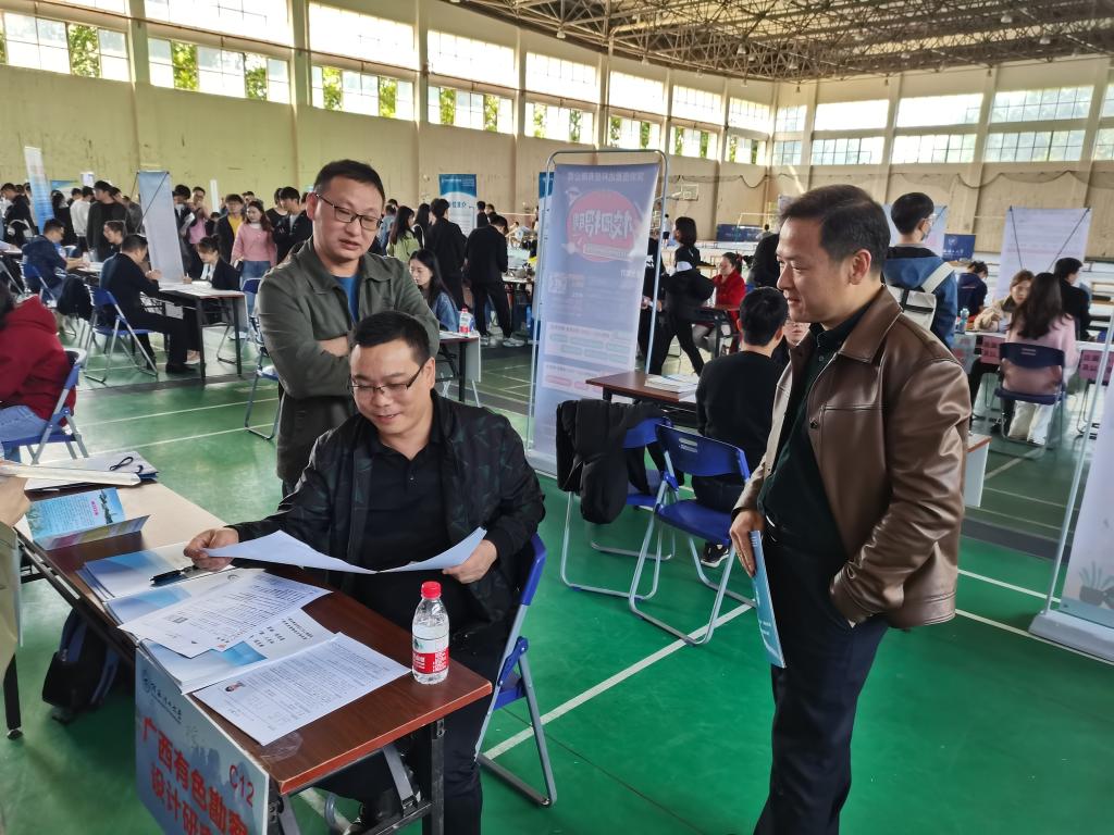 4月25日下午,学校2023届研究生春季就业双选会在雁山校区体育训练馆成功举办。来自广西、上海、深圳、江西、安徽等全国各地的40余家用人单位来校招聘,为研究生毕业生提供工作岗位500余个。