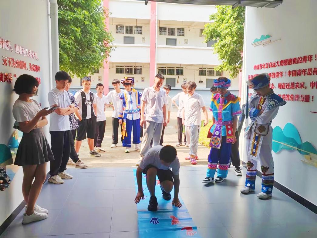 活动共分为三个部分。第一部分,学重要讲话,在谆谆教诲中坚定民族团结。在思政大讲堂内,全体师生一起学习习近平总书记在全国民族团结进步表彰大会上的重要讲话,观看“广西三月三”宣传视频,了解少数民族文化,并在少数民族学生带领下合唱《什么结籽高又高》《没有共产党就没有新中国》《我和我的祖国》等歌曲,用歌声传达对伟大祖国、中华民族、中华文化、中国共产党、中国特色社会主义的坚定认同。