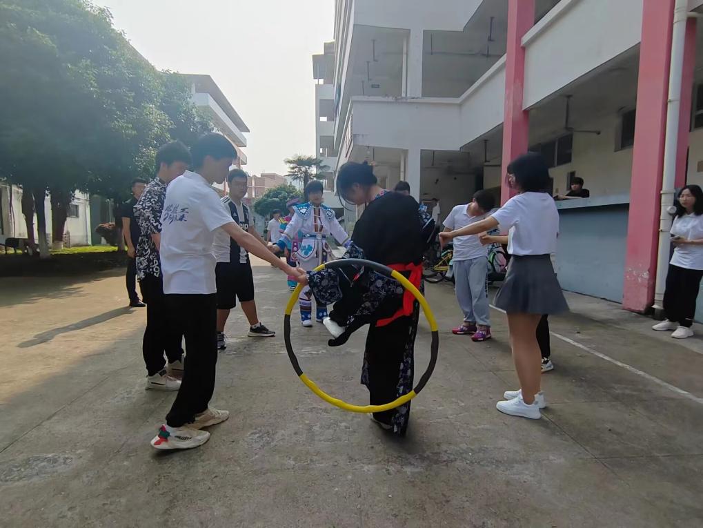 第三部分,玩团体游戏,在生动实践中体悟民族团结。团支部精心准备了团体合作游戏。游戏“构建同心圆”让各族同学心连心,不松开彼此紧握的手;“齐心搭建”“不倒森林”让他们领会听从指挥、齐心协力的重要性;“手脚并用”让他们相互提醒、相互鼓励。游戏现场欢乐不断,笑声频传,在无声中深刻领悟民族团结、携手奋进的重要意义。