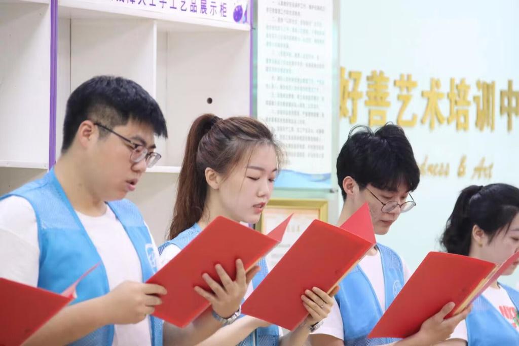 在活动过程中,阳光家园的夏老师带领志愿活动团队详细介绍阳光家园现有情况,随后,支部同志纷纷积极与社区残障人士进行交流,并拿出才艺进行展示,在“歌舞暖家园”和“才艺传情谊”环节中,用精彩的相声、嘹亮的朗诵以及有爱的手语表演将活动推向了高潮。紧接着,支部党员同社区人员一起进行手工互动并购买了义卖品。最后,工作人员带领大家参观了阳光家园的活动室、舞蹈室、厨房、水房、饭堂、休息间等区域。