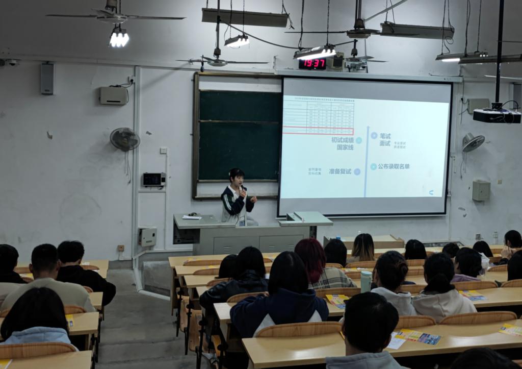 为进一步做好2023届毕业生研究生复试工作,帮助考研学子更加精准地做好复试规划,学院在复试前期召开考研复试经验交流会,交流会邀请地学院研究生董晓鑫同学为同学们分享经验,董晓鑫同学结合个人复试经验,分别就复试内容、调剂流程、读研经历、个人体会等方面进行了分享,勉励师弟师妹们要调整心态、掌握信息、专心复习,为同学们提供了宝贵的考研复试技巧与资源。交流会上,年级辅导员宁乃向鼓励学生要具备有毅力、能吃苦的精神,为各种机遇做好充分准备,把握每次来之不易的机遇,以奋斗者的姿态,从春天出发,在实现自己梦想到道路上拼搏奋斗。