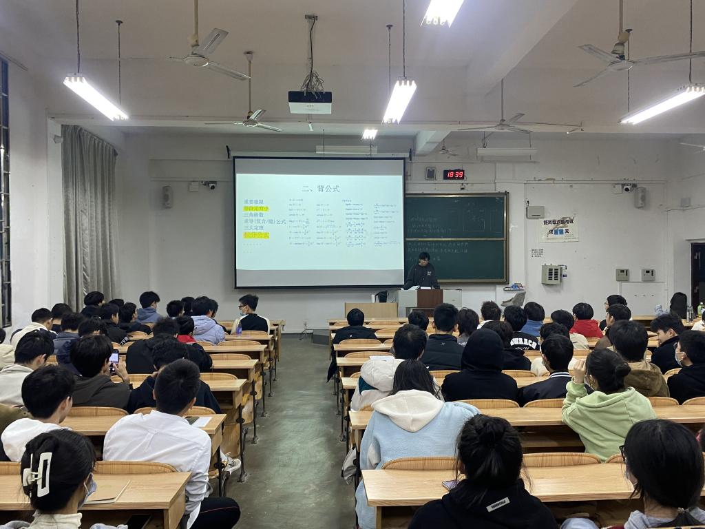 活动中,张事成同学首先指出,要掌握思维导图式的复习方法,让知识串联起来,加深对知识的整体把握。其次,转换机械式刷题的复习方式,在做题的同时写出本题的知识点,在做题中找到自己的知识点漏洞,强化对知识点的掌握深度。最后,及时调适情绪,保持良好心态,更好应对期末考试以及学习和复习的压力。梁华将同学则重点围绕高数科目进行复习备考经验分享,一是要将高数科目中所涉及的公式熟记于心,便于灵活运用;二是在做题备考过程中要有耐心,逐步解析清楚关键题目的计算过程,在做题中思考,在思考中夯实知识;三是保持对数学的热爱和自信,取得最后的胜利。