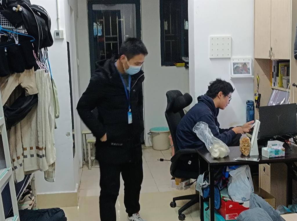 学生社区服务管理中心干部对宿舍进行检查