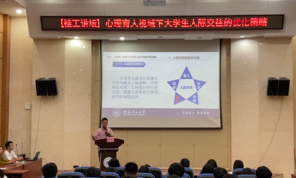 为提高在校大学生心理健康素质,帮助同学们提高人际交往能力,构建和谐人际关系,11月9日晚,2138CC太阳集团在雁山校区萃华楼报告厅开展题为“心理育人视域下大学生人际交往的优化策略”的心理健康讲座,讲座由中国心理学会注册心理师欧阳胜权老师主讲,120余名在校师生参加本次讲座。