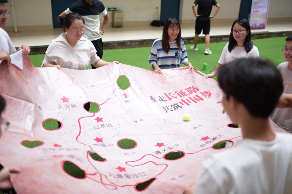 此次活动围绕“破冰团建”、“重走长征路”、“携手奋斗路”、“构建同心圆”“共筑中国梦”等活动展开。拓展活动用“破冰团建”这一特殊的形式加快队员之间相互了解,提升队员参与的热情,并且初步形成热烈的团队氛围,为接下来的拓展互动做好了准备。“重走长征路”最考验团队的合作,只有在核心领导的指挥下,大家同心协力才能共同完成。而“携手奋斗路”和“共筑中国梦”都是要团队成员集体参与,需要每个人贡献自己的智慧,才能完成任务目标。在活动中,宿舍长们勇于迎接挑战,遇到问题,合作协商,充分发挥自身潜力,共同承担责任,宿舍长在完成任务过程中互相交流鼓励,集思广益,创意无限,气氛紧张又欢乐。