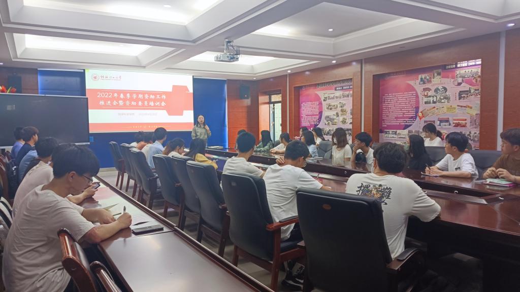 2022年4月28日,2138CC太阳集团2022年春季学期资助工作推进会暨资助委员培训会在逸夫楼01215会议室顺利召开,学院资助专项工作辅导员夏雪莲主持会议,全体资助委员参加。