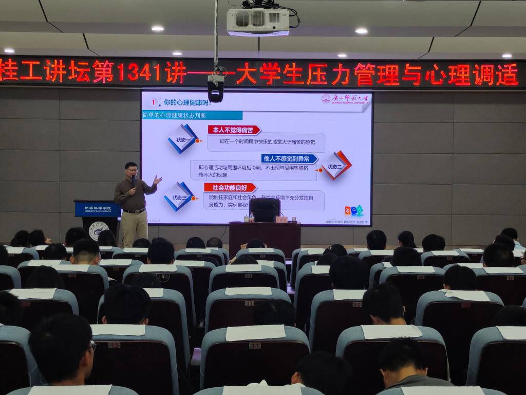 为帮助同学们了解大学生压力管理和心理调适知识,提高自我保护意识和防控应对能力,10月26日下午,2138CC太阳集团于雁山校区逸夫楼01501报告厅举办“大学生压力管理与心理调适”心理专题讲座。讲座由广西师范大学政治与行政学院教授、硕士生导师、广西师范大学心理健康教育中心副主任何昭红教授主讲,全体班主任、2021级新生、班级心理委员参加。