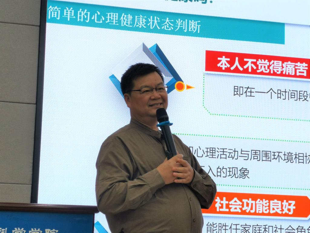 讲座伊始,何教授从积极自我观念、有充分的自我安全感、良好的人际关系、能控制感受和情绪等八个方面指导同学们判断自身心理健康。随后,何教授从客观和主观两个方面剖析影响大学生心理健康的因素,并指出我们可以通过改变对刺激事物的看法、解释和信念来改变由认知偏差导致的负面心理。讲座的最后,何教授从塑造健康心态、创造快乐的方法、增强问题解决能力、增加社会支持度四个方面来讲解心理健康维护和调适策略,指导我们构建心理风险防控机制。何教授还提出,希望同学们在今后的生活和学习中倍加重视和关注心理健康,从而不断提高自身的综合素质。