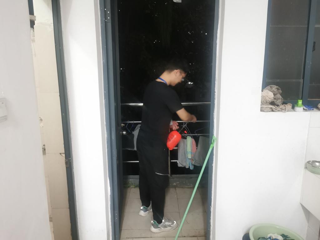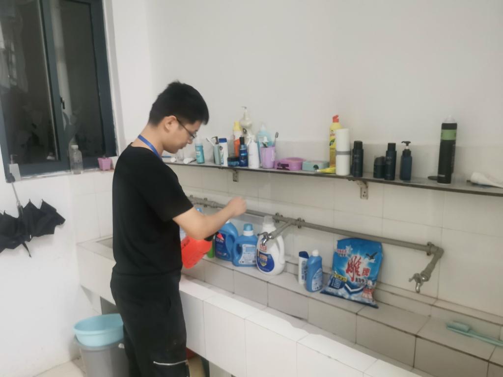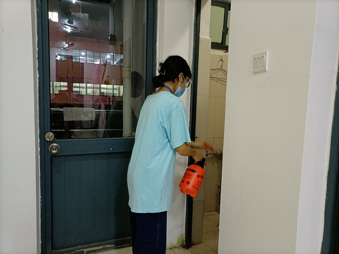 本次消杀工作共分为3个小组,在消杀工作开始之前由社区服务中心主任董艳鹏同学就“消毒液配制标准”向组织成员进行讲解,然后给组织成员演示常规的消毒方法,提醒消杀时需要注意的事项,以确保消杀工作的有效性。接着,各组织成员将配置好的消毒液装入喷壶后,按分配的任务和消毒的规范性操作,对宿舍展开了全面的消杀工作。对于重点的区域,如卫生间及水槽等容易滋生细菌病毒的地方,组织成员进行反复的喷洒消毒,最大程度上切断感染的源头。