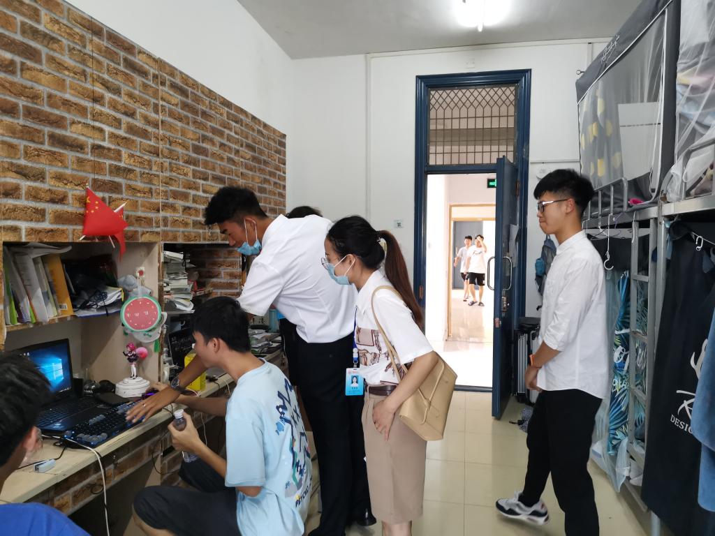 安全迎生进校园,师生查寝暖人心。8月28日下午,2138CC太阳集团党委副书记陶剑飞带领全体辅导员深入学生宿舍,开展宿舍安全督察工作。检查中,辅导员们与返校学生进行了深入的沟通和交流,对学生返校后的生活学习等情况进行了亲切的询问,对于发现的问题,当场指出并提出了整改要求,同时提醒同学们在校期间注意身心健康,调整作息,做好新学期的学习计划等。