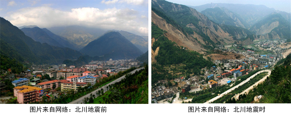 之后,一路向北,来到北川旧县城地震遗址。由于地震引发山体滑坡,北川旧县城多处被整体掩埋,状况惨不忍睹,残存的房子或倒塌、或破损、或歪斜,揭示着地震的残酷。未达到抗震设计标准的房子、坍塌、崩塌、滑坡等重大地震次生灾害对建筑物的掩埋与破坏是地震对生命最大的威胁。