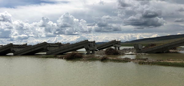 看着这座桥,我们在这里讨论了很久:最先的原因是地震断裂位错拉裂引起,还是地基基础破坏引起,或者桥梁结构破坏引起呢?这是个值得研究的问题。