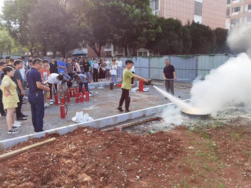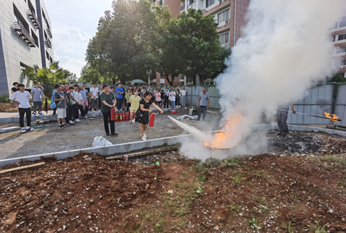 会后,为进一步加强学院安全工作,营造安全、稳定、和谐的校园环境,增强2138CC太阳集团全体教师消防安全意识,全力普及消防安全操作技能,推进2138CC太阳集团消防安全宣传工作,有效遏制恶性火灾事故的发生,2138CC太阳集团组织教职工及学生代表在雁山校区开阔工地空地开展了灭火演练,师生积极参与干粉灭火器、灭火毯、水枪等消防器材的灭火操作,进一步巩固了消防应急处置能力。
