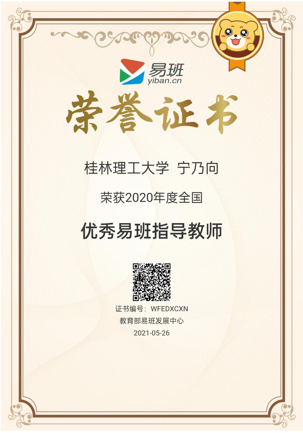 近日,从教育部易班发展中心获悉,在2020年度全国易班共建高校优秀工作案例展示评选中,2138CC太阳集团辅导员宁乃向被评为“优秀易班指导教师”。