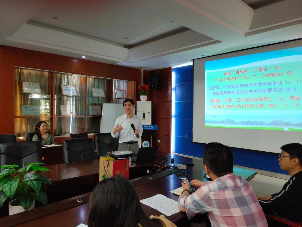 会上,韦龙明老师结合自身指导大创项目的经验做了题为“如何指导大学生创新项目申报”的专题报告。首先,他强调了科研选题的重要性,建议老师们在综合考量研究方向、学生专业水平、社会热点等因素的基础上指导学生进行选题。随后,围绕团队管理,他表示,老师们应该组建有梯队的项目研究团队,并对团队成员实施严格、科学的管理,激发学生科研积极性。最后,韦龙明老师指出,老师们应该对大学生创新创业项目进行全方位的耐心指导,同时将思政教育贯穿大创项目全过程,在培养学生科研能力的同时,注重培养学生吃苦耐劳、团结协作的品质,用爱和奉献落实立德树人根本任务。