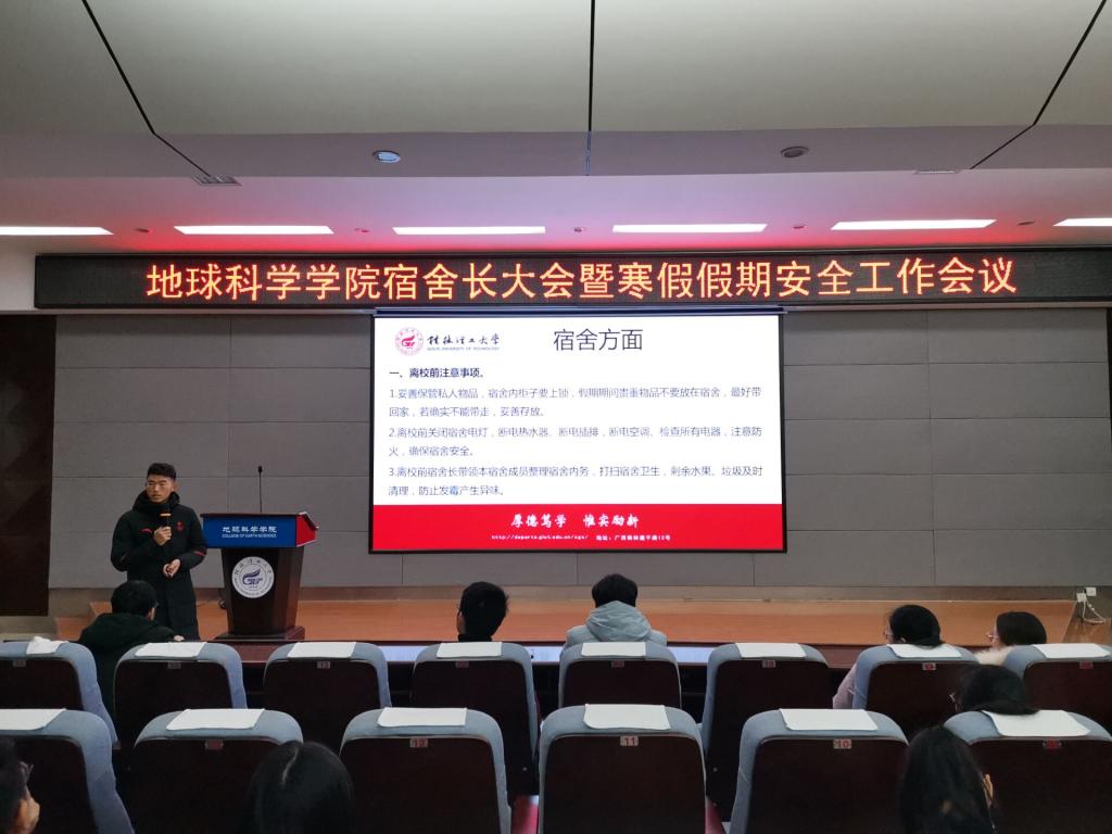 2021年1月7日中午,2138CC太阳集团在逸夫楼501报告厅召开宿舍长大会暨寒假假期安全工作会议,会议由学工办王成瑞老师主持,各年级辅导员和全院宿舍长参加。