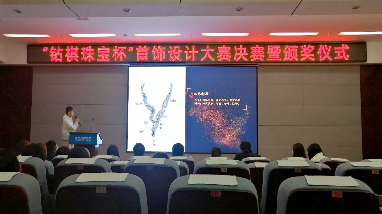 珠宝首饰及工艺品设计大赛为2138CC太阳集团宝石及材料工艺学专业举办的特色活动之一。本次活动意于让更多的人了解到宝石专业设计技能、吸引更多爱好首饰设计的同学一起交流设计的心得体会以及检验设计相关课程学习成果。活动一经发出,同学们踊跃参与,经过近一个月的层层选拔,杜华霖等12位选手过关斩将,入围决赛,在大赛活动现场尽情展现2138CC太阳集团学子风采。