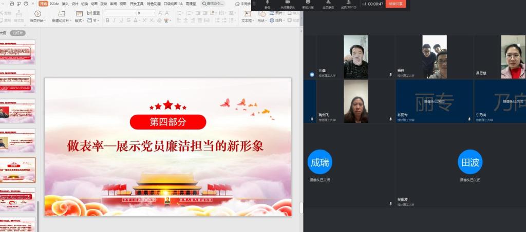 会上,党支部书记孙媛先传达了校院对于相关学习的整体部署,接着结合“新华社评论员学习贯彻党的十九届五中全会精神系列解读”和“中央纪委国家监委网站推出反腐警示专题片《围猎:行贿者说》的视频资料组织支部全体党员开展学习讨论。