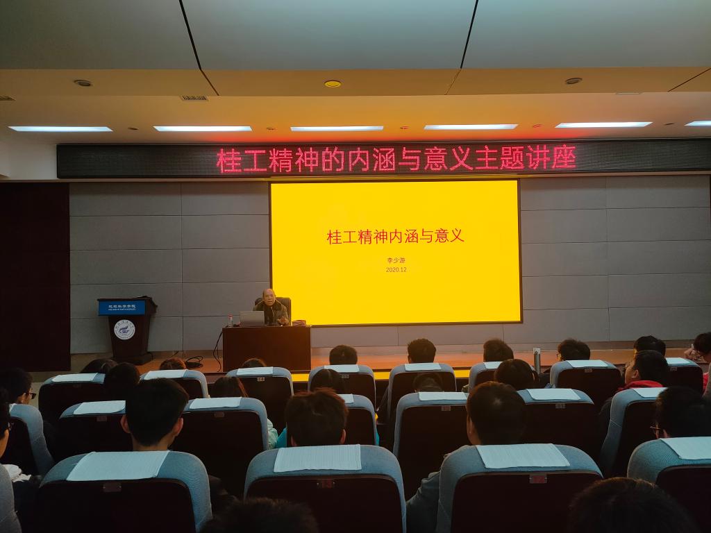 为加深地院新生对“桂工精神”的理解,将桂工精神内化于心、外化于形,助力新生更好成长,2020年12月4日晚,学院在01501报告厅举行桂工精神的内涵与意义主题讲座。此次讲座由我校旅游与风景园林学院原党委书记李少游教授担任主讲,由2138CC太阳集团学工办夏雪莲老师主持,200余名新生参加。