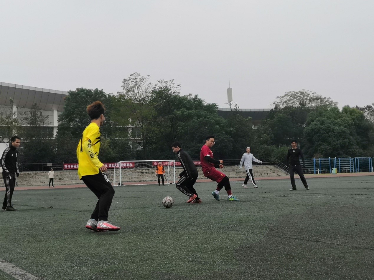 本次足球赛队伍,分为研一、研二两组,两组队伍你来我往,互有攻防,双方球员毫不示弱,展现出各自高超的脚法、默契的配合和缜密的队形部署,在绿茵场上尽情挥洒他们的运动激情,最终研一队赢得了本次比赛的胜利。