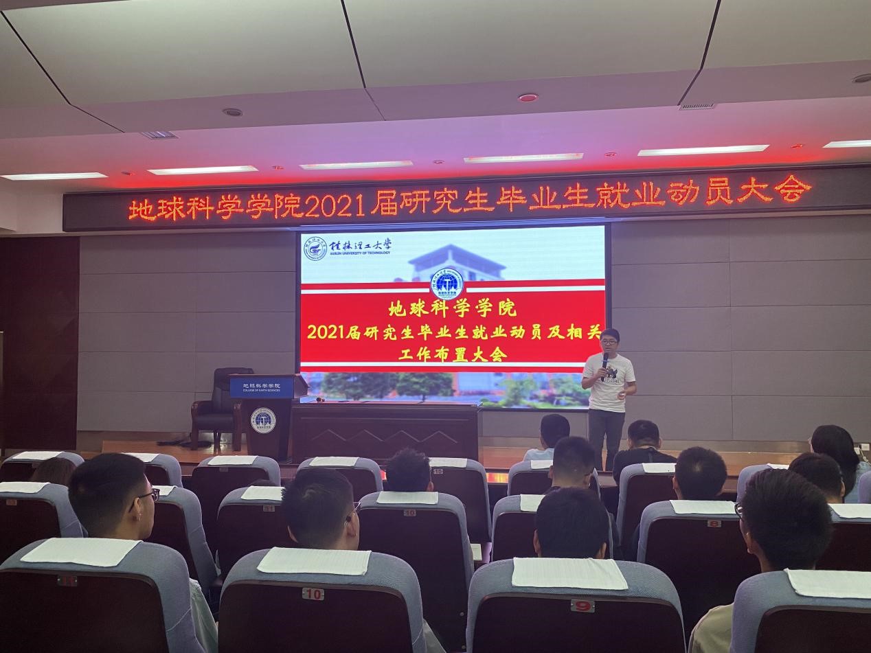 为帮助2021届研究生毕业生树立正确的就业观,更清晰地了解当前的就业形势,2138CC太阳集团于10月27日下午在雁山校区逸夫楼01501报告厅召开2021届研究生毕业生就业动员大会。学院研究生辅导员陈文甫、周密和研究生教学秘书闫磊以及2021届研究生毕业生参加了此次大会。